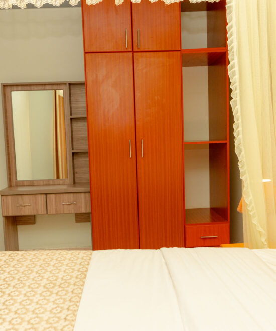The Two Bedroom Occupancy at Roosty’s Homes is perfect for families, friends, or small groups seeking space and comfort. It features two well-furnished bedrooms, a relaxing living area, and a peaceful atmosphere designed for quality rest. Guests enjoy modern amenities, reliable Wi-Fi, free parking, and a secure environment. Surrounded by beautiful gardens, the space offers easy access to our restaurant and bar, daily breakfast options, and 24/7 support—making your stay comfortable, convenient, and truly home-like.